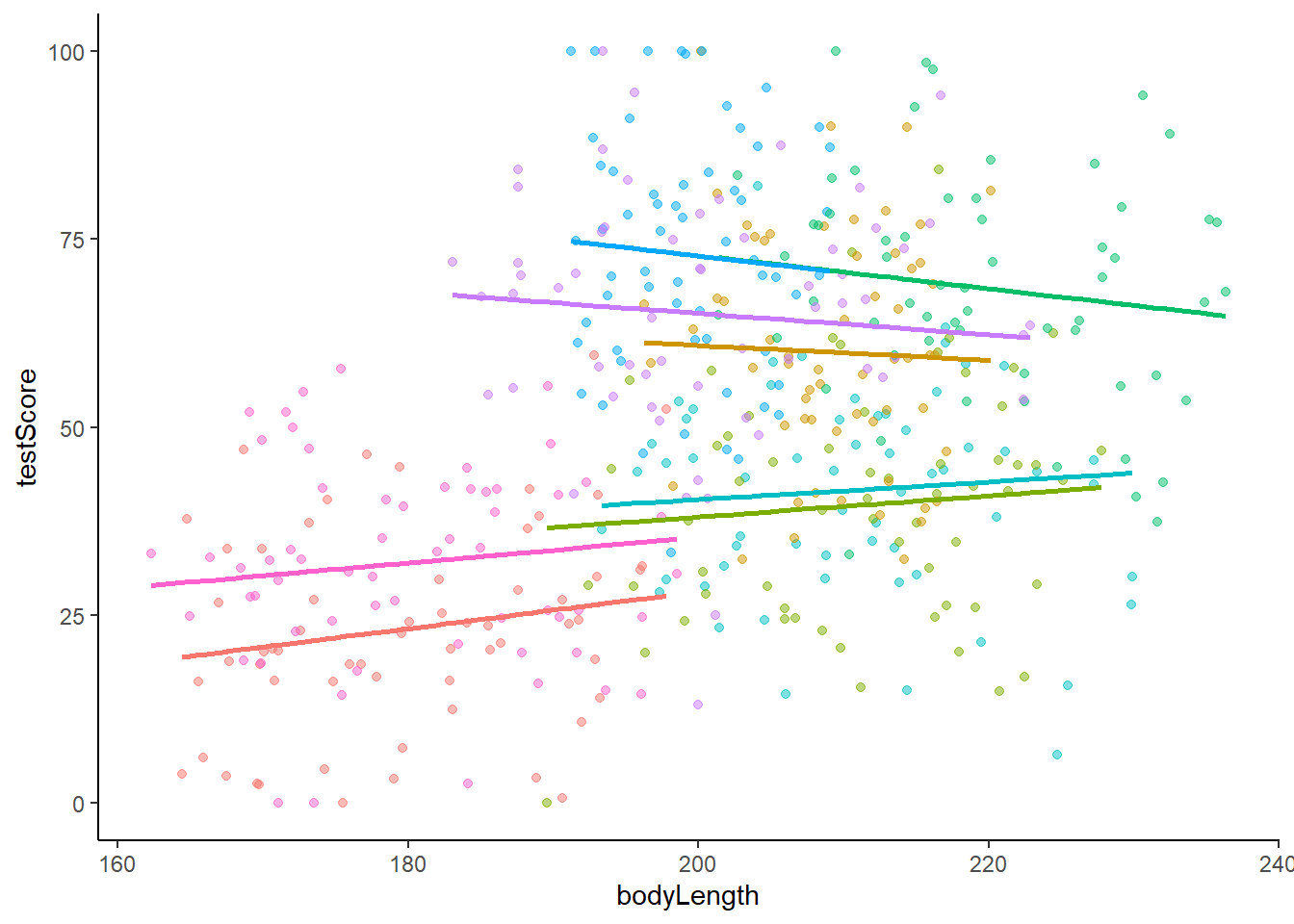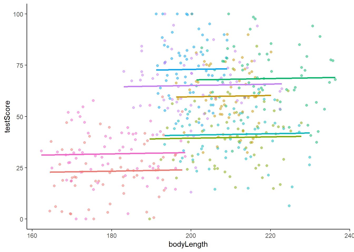 Formula: testScore ~ bodyLength + (1 | mountainRange)