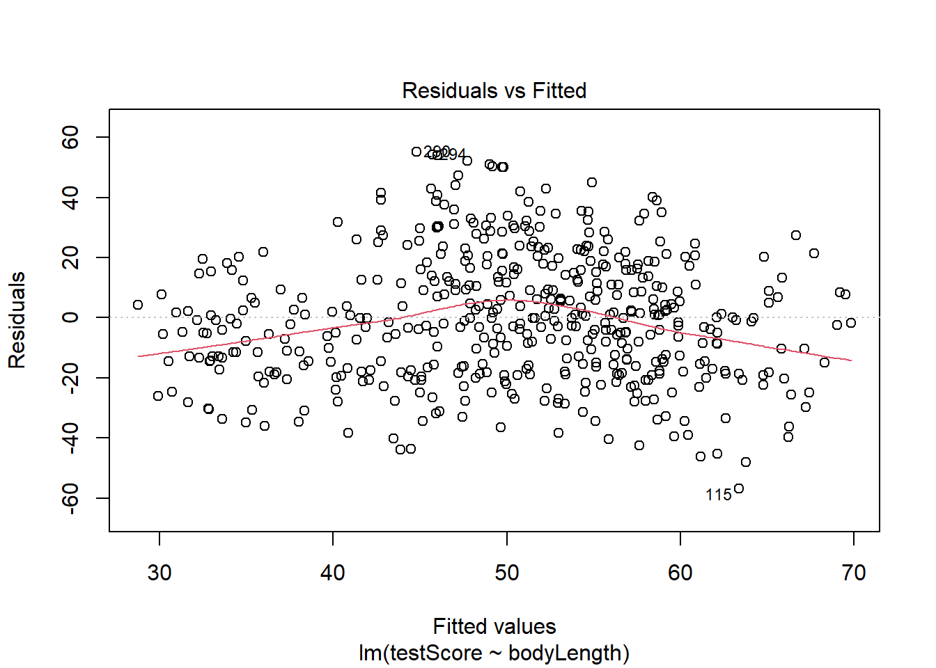 * The p value under Pr(>|t|) is significant indicating we might reject the null hypothesis that there is no relationship between bodyLength and testScore.