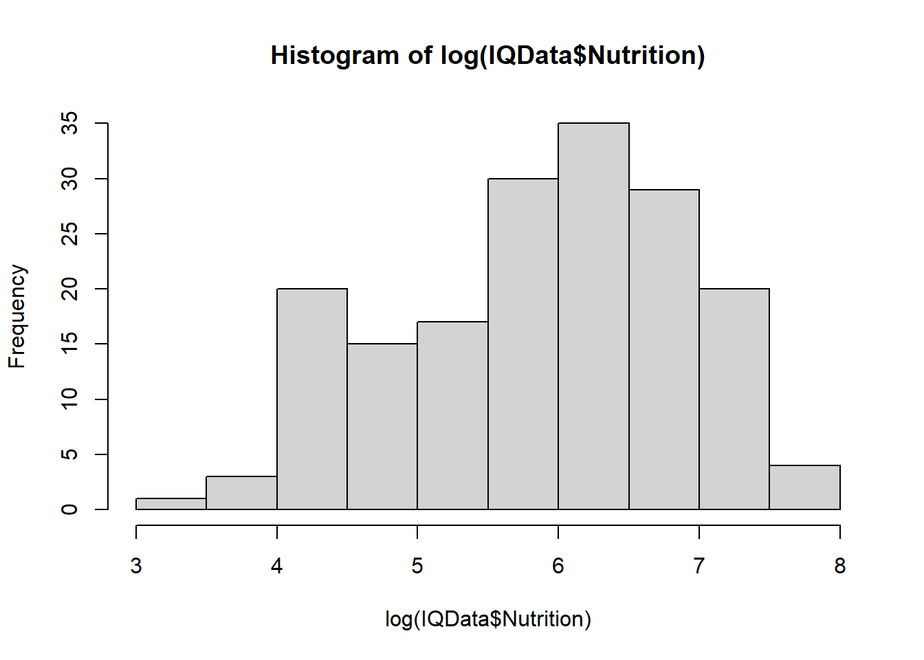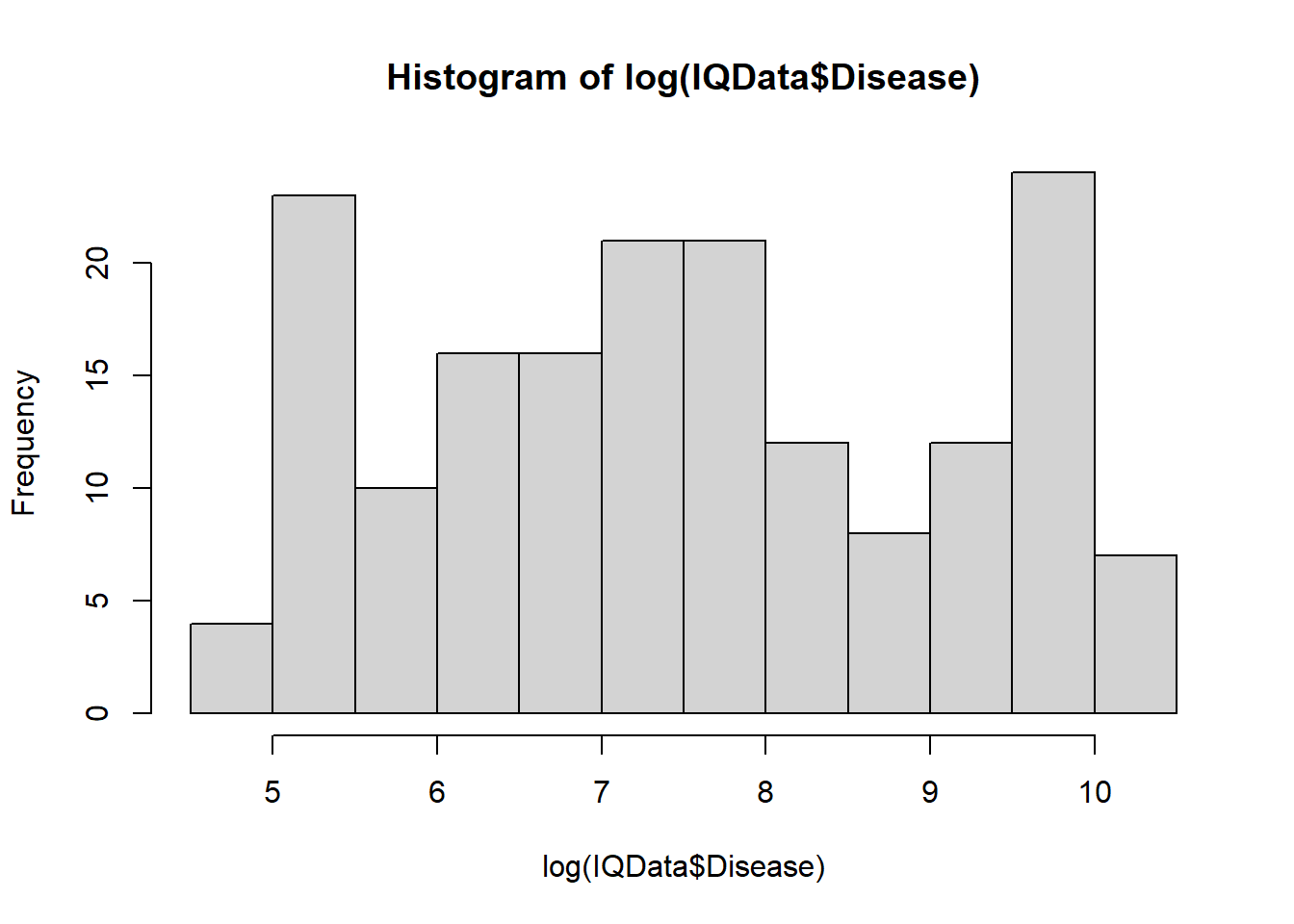 lm(formula = IQ ~ log(Disease) + log(Nutrition), data = IQData)